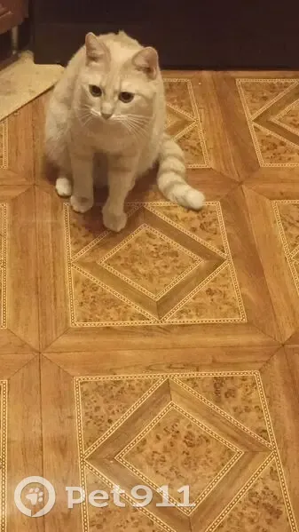 Рыжая, но не ярко рыжая а с молочно рыжая с полосами. Глазки желтые. Очень пугливая, боиться всего, но если протянуть руку и дать обнюхать идет на контакт и дает себя гладить, потому что очень ласкучая. Выпала с балкона пятого этажа в ночь со 2 на 3. Обнаружили пропажу только утром. Зная ее характер, она скорее прячется в очень укромном месте.