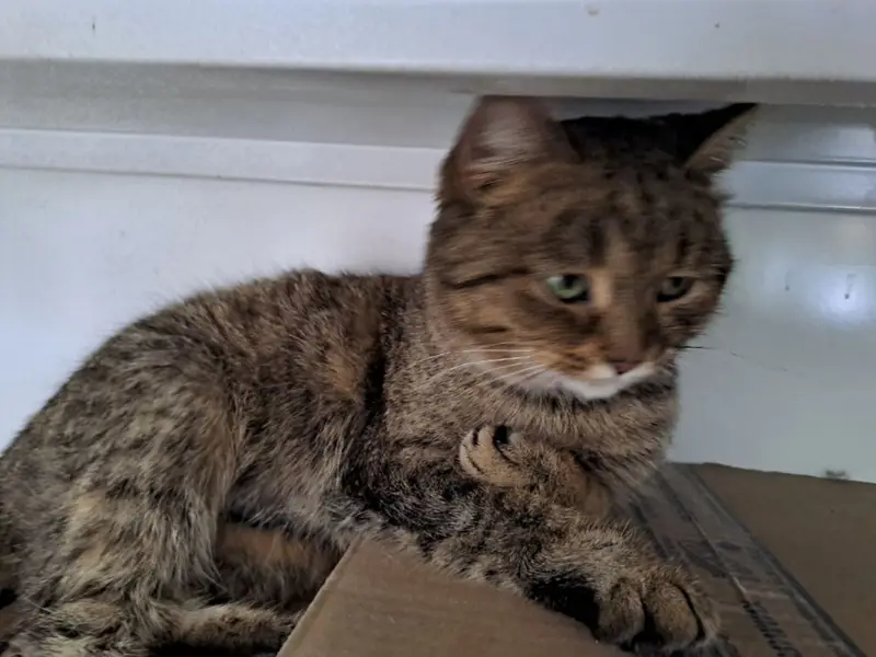 Серый с тëмными полосками и рыжевато-коричневым пузом. Годовалый, не кастрат. Пугливый. Отзывается на кличку Паштет. Ушëл гулять, соседи говорят, что заходил в подъезд 21.04, дома никого не было. Потом его никто не видел. Может прятаться в подвале.