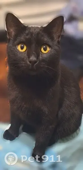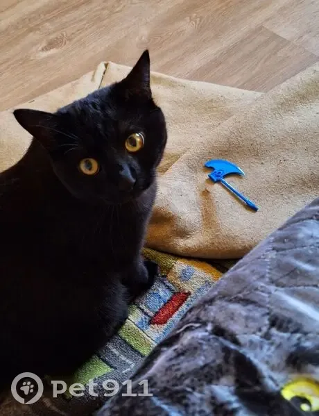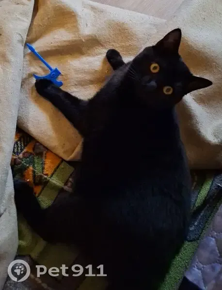 Резко прыгнул на сетку окна, выбив ее, и убежал. Зовут Платон, но на имя редко откликается. Описание: ПОЛНОСТЬЮ черного цвета, возраст — примерно 3 года, кастрированный, глаза темно- янтарного (темно-желтого цвета), на левом глазу есть небольшое пятнышко на зрачке, крупный (вес 5-6 кг), обычное выражение мордочки немного пугливое. Характер: Тоже пугливый, может прятататься. Неручной, если попытаться взять на руки, вероятно, будет вырываться и убегать. Поэтому ловить следует осторожно и внимательно.