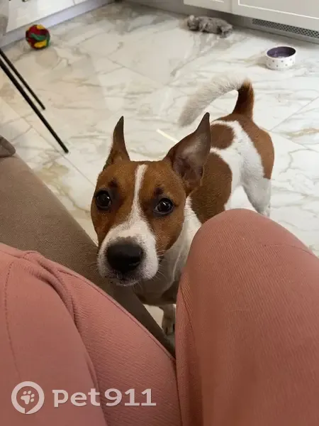Джек-рассел терьер, мальчик. Очень общительный и ласковый, нет переднего нижнего зуба посредине.