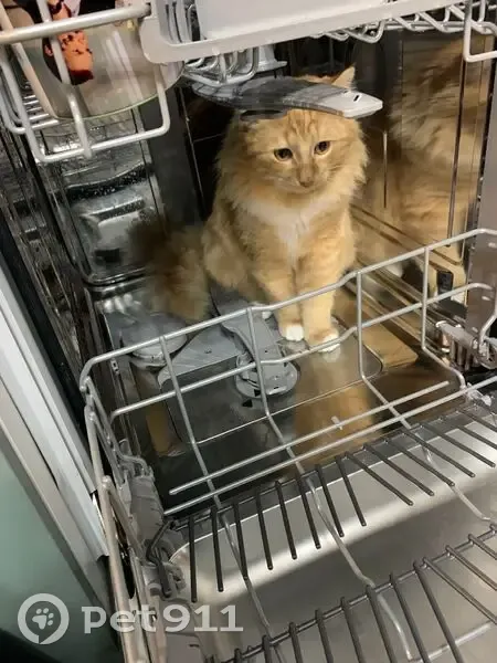Рыжий пушистый молодой кот с карими глазами. Домашний, выбежал случайно, боится чужих людей, никогда не был на улице. Скорей всего где-то прячется, на кис-кис не отзывается. Кличка Персик.