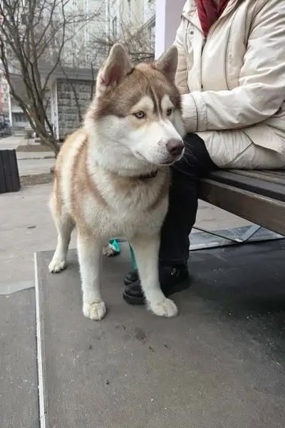 Порода- Хаски. Цвет-медовый. 2. 5 года. Без ошейника. Кличка-Лаки.