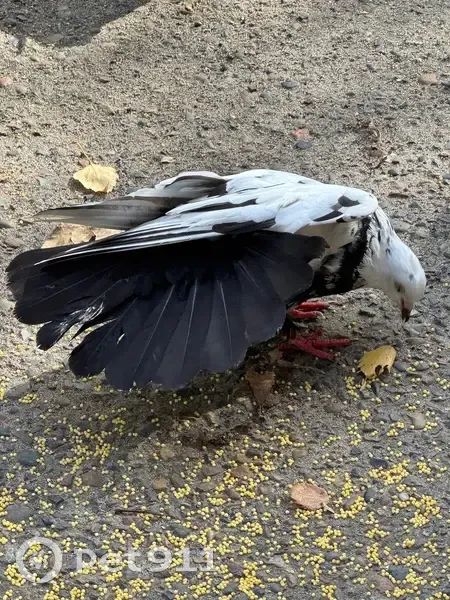 Найдена голубка По видимому чья то,из голубятни Наверное выпустили на свадьбе Не улетает сидит каждый день на одном месте Уличные голуби не принимают Скоро морозы птичка погибнет Хозяин найдись пожалуйста