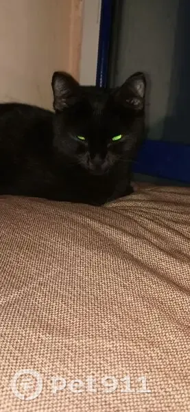 Дитё чёрное, не крупное, глаза жёлто-зелёные, без ошейника, ни адресника, ничего... Лежит в подъезде на окне грустное второй день, похоже не ест (воду и корм принесли). Не агрессивное дитё, поглажено, - мурчит. Вроде блох не замечено, как и болячек внешних, кажется домашним. Надеюсь, хозяева найдутся