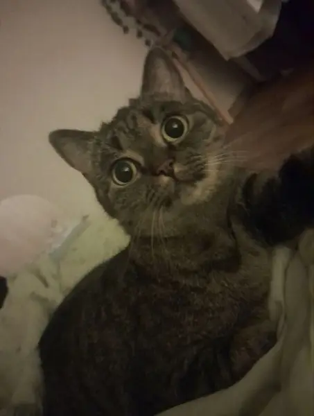 Окрас пёстрый, живот имеет рыжий окрас. Глаза зелёные, хвост укорочен, подушки лапок черные. Гуляла недалеко от адреса Алтайская 24 около одной-двух недель. К лотку приручена