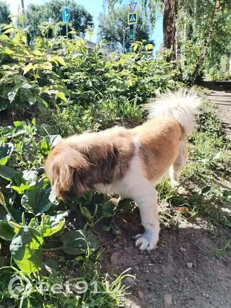 Собака бродит в районе дома 51 по улице Льва Толстого. Подстрижена, но уже немного грязная, голодная. Смотрит на каждого прохожего.