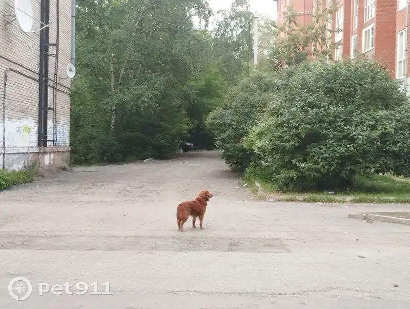 Мы приезжие ,гуляли с мужем обратили внимание что бегает дезориентированная собака в ошейнике , ищет глазами . Мы не забирали. Там же и осталась. Хозяева отзовитесь!
