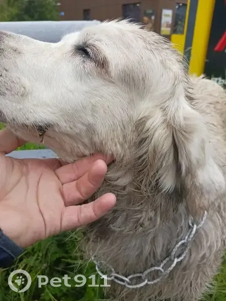 Нашел недалеко от Парковой 28, на данный момент она на складу Томск ртс. Породу не разобрал, что-то между лабрадором и ретривером на мой взгляд. Цвет белый. Собака общительная отзывчивая. Так же на собаке ошейник с вышивкой в виде розы.