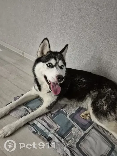 Гуляли со своими собачками и к нам привязалась хаска. Девочка, точно домашняя, по виду и поведению - щенок месяцев (6-7), худенькая, неухоженная. Нашли во дворе на проспекте Фрунзе 125, была без ошейника и поводка. Забрали к себе на передержку.