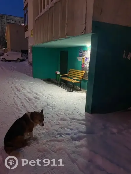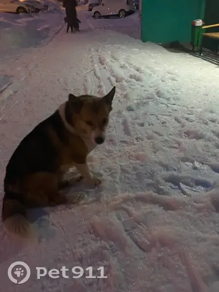 Собачка небольшого роста , напоминает корги . Очень добрый . Появился недавно около подъезда , и ни куда не уходит , возможно потерялся или выбросили
