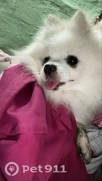 Белая собака, похожа на шпица. Девочка. Не га...