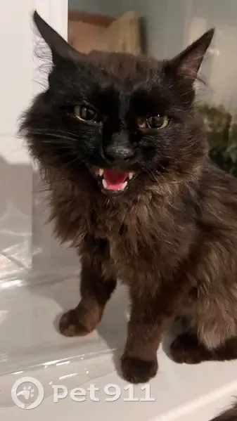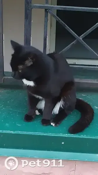 Черная кошка, с белой мордочкой. Вчера обнару...