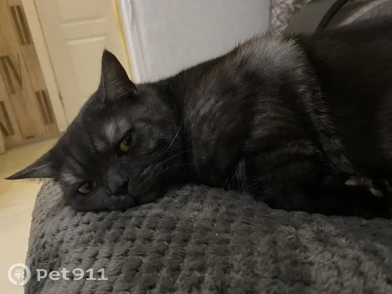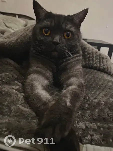 Британец, темно-серый со светло-серыми полосками, глаза ярко-жёлтые, кличка - Балу. Выпрыгнул с балкона 1-го этажа по адресу пер. Урожайный 28В около 4-х утра. Ближе к 5-ти убежал в сторону частного сектора.