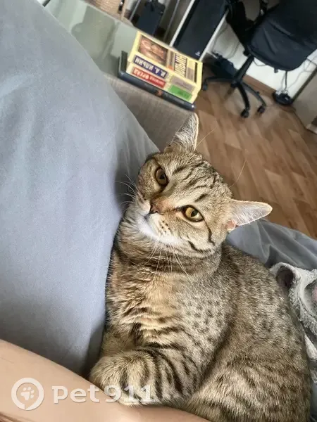 Маркуша выбежала из дома 21 июня, район зеленые горки. Окрас тигровый, преимущественно светло-коричневый, стерилизована, есть маленький шрамик на брюшке ближе к хвостику. Глаза яркие желтые, реагирует на имя, людей опасается.