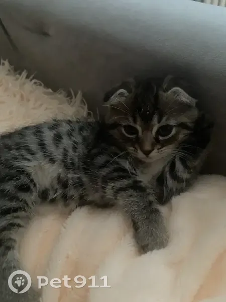 вислоухая кошка, на кончике сломан хвост,четкие рисунки, адрес примерно там, зовут фифа, отзывается может не с первого раза.