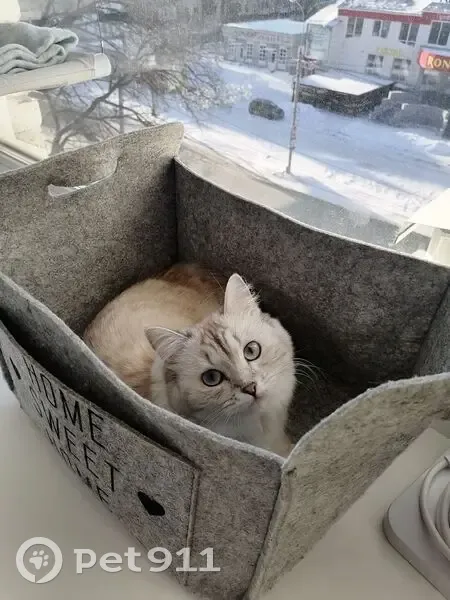 Глупышка прыгнула ночью с балкона, но поиски ночью ничего не дали. Как и утром. Хоть кошечка и взрослая, но маленькая и очень пушистая. Светлые голубые глаза, молочная шерсть с коричневыми и веры и пятнами. Хвост коричневочерный и пушистый как у белки