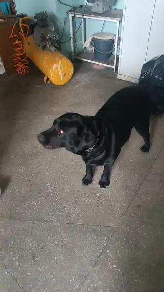 Черный лабрадор, 5 лет, девочка. Случайно оставил привязанной у магазина Быстроном примерно в 20 часов 17 сентября 2025. Вышел через другой вход и забыл про нее