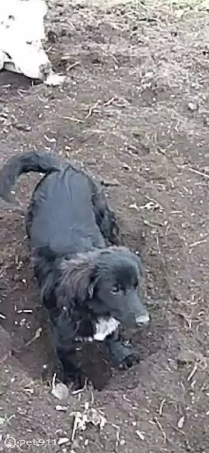 дворняжка, мальчик . черного цвета на грудке белое пятнышко, 7 мес шерсть длинная волнистая. из частного дома вылез под забором максимум полчаса прошло я ушла в магазин пришла сразу начала искать. кличка федя