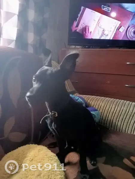 Чёрного окраса, на задних лапках, около гогтей, капелька белого, незаметно. Мини той, помесь с мини таксой, ушки в разные стороны. Был одет ошейник, темно красного цвета. На ошейнике, с обратной стороны, написана адрес и телефон, чёрным фломастером. Выбежал на улицу, когда мы выходили, далеко от дома никогда не уходил, всегда гулял рядом на ул. Комарова 55, где и пропал в районе 18.00-19.00 часов.