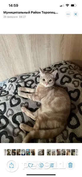 Тишка-молодой кот, ему 1,5 года. У него светло-рыжая шерсть, по всему туловищу и хвосту выступают белые полоски. Подойдет к вам, если вы по шуршите пакетом китекета или сухим кормом