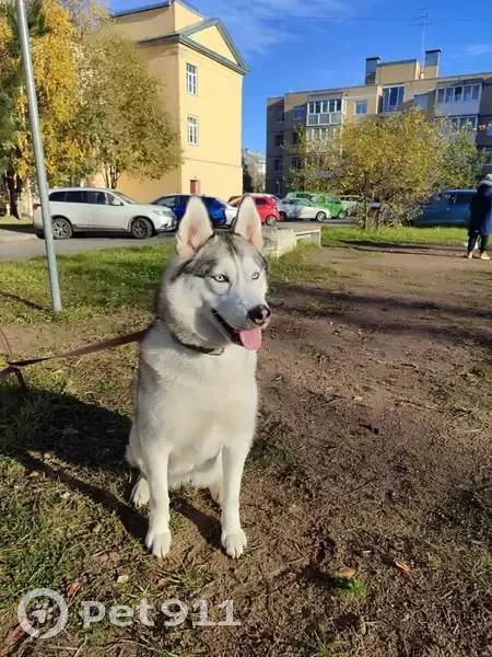 Собака породы Сибирская хаски, серо-белый окрас, глаза голубые, собака молодая на вид и по поведению 1-2 года, добрая, ласковая и очень умная собака, нашли ее на заправке в ЛО, когда заезжали заправить машину, собака просидела со слов очевидцев там 2 дня, стало жалко забрали на передержку себе