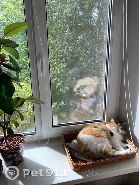 Трехцветная, очень похожа на породу Сибирская лесная Очень коммуникабельная красивая кошка, если позвать подойдет. Меховой ворс на лапках Хвост пушистый, как у белки
