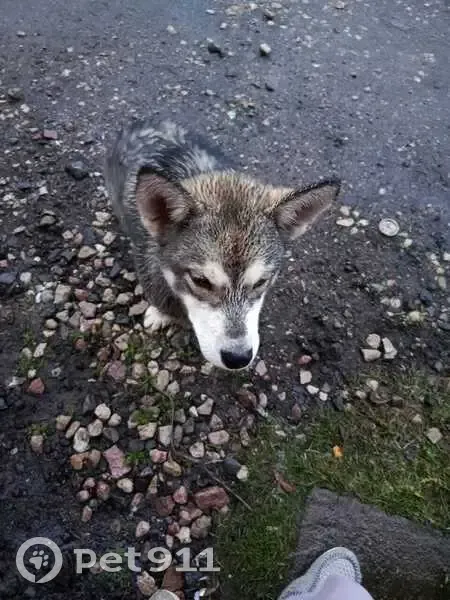Собака сидит у круглосуточного магазина в д.Селищи.Заметила продавец магазина,что пес с утра пришел и никто его не забрал, собака с ошейником,от еды не отказалась
