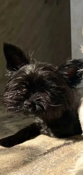 Хозяин живет в Василовке. У него две собаки. Одна покрупнее, вторая - эта. Он их частенько забывает здесь, а сам уезжает на автобусе. Замерзнет за ночь на улице.