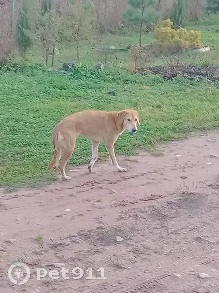 Рыжий окрас, худая, похожа на охотничьи. Пугливая.