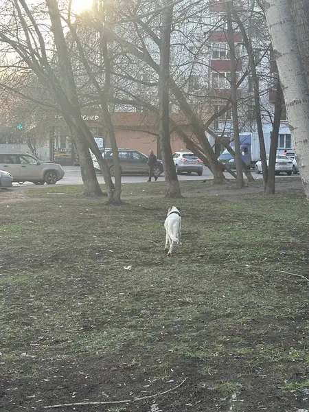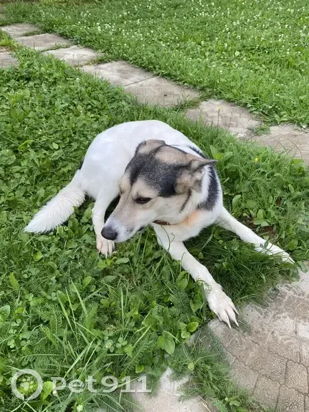 Белая собачка с черными пятнышками, серая мордочка. 15 июля ночью на участок Лесная 37 пришла собака (Девочка). Постоянно лаяла, потом ушла. К утру вернулась. Сейчас спокойно лежит у дверей. Собака не агрессивная, даже ласковая, с ошейником! На кошек не реагирует, просится в дом, на привязи скулит, видимо жила в доме. По всем вопросам обращаться по телефону 89267626287 (Дарья).