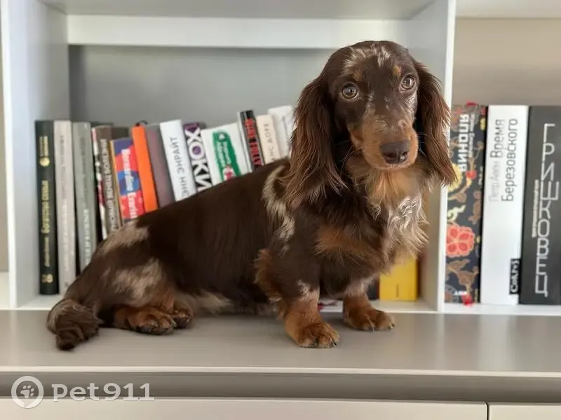 Кличка Одри, Длинношёрстная кроличья такса мраморного окраса, 3 года. Убежала с территории дома. Будем признательны за любую информацию. Нашедшему гарантируем вознаграждение 100.000 рублей. Номер телефон +79147901881 (Александр), либо Whatsapp +79147071166 (Мия)