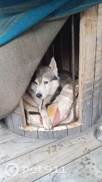 Кобель Хаски мальчик ориентировочно 5-6 лет , очень добрый знает команды . Вышел из леса , найден волонтерами. Ориентировочно более 1,5 месяцев жил в деревне Абрамовка на улице у подъезда