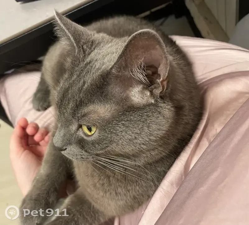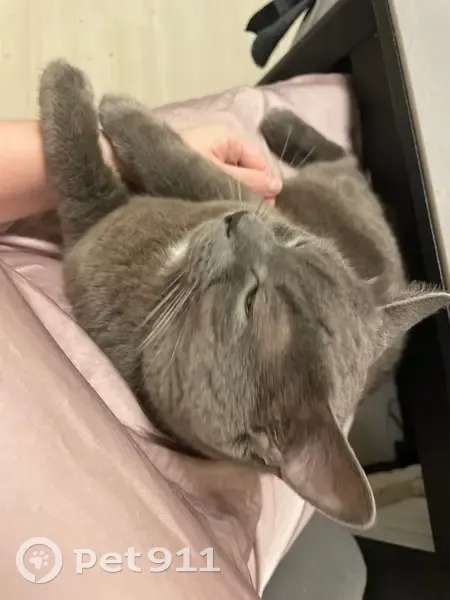 Полностью серый, с белым пятном на груди, как будто галстучек. Убежал в районе цибино 2, не далеко от трудовой улицы. Он был на поводке, произошел громкий звук, он сорвал поводок и прыгнул за забор, пока обошли его уже там не было.