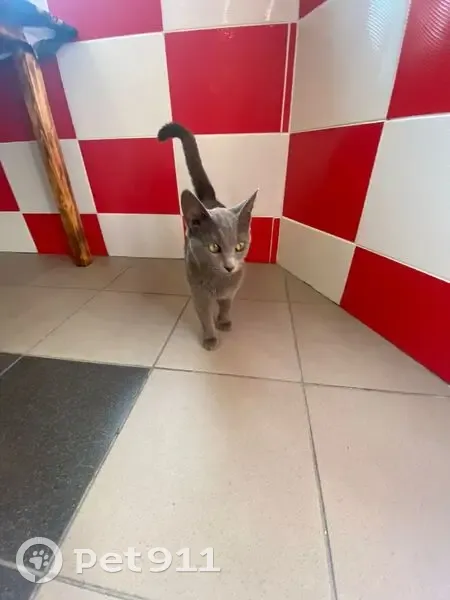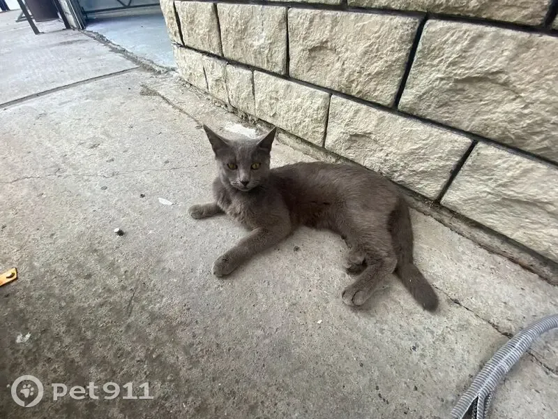 Серая кошка похожа на британца. В кафе сказали, появилась примерно 19 июля.