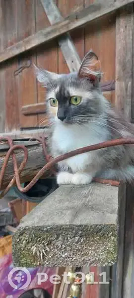 трёхцветная кошка с котёнком, возможно не одним, потому что слышу, что ещё где-то пищит, но найти не могу, возможно на соседских участках... Большое подозрение, что кто-то просто выкинул кошку с котятами, но хочется надеяться, что просто потерялась