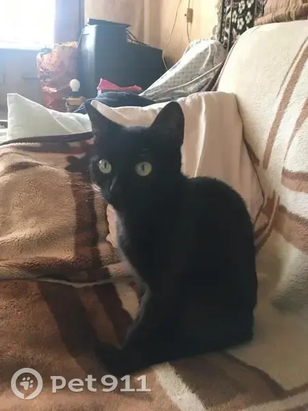 Кошка Алиса, 12 лет, стерилизована, есть шрам после стерилизации на животе, улицы не знает. Выскочила в форточку. Кошка чёрного окраса, есть седые волосики по всему телу