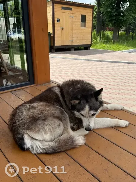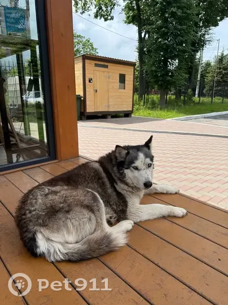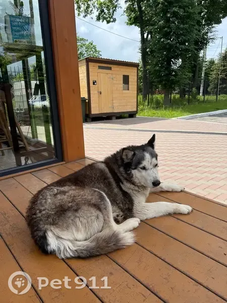 Попрошайничает где Платоновский парк, возле кафе Терраса, на нем два ошейника, один синий (от клещей видимо), второй черный кожаный, чуть прихрамывает наступая на задние лапки.