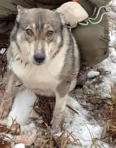Вечером 5 августа по адресу Еловой проезд, д.4 бегала собака с ошейником. Кобель. Похож на метиса хаски или лайки. Дружелюбный, контактный, знает команду «сидеть».