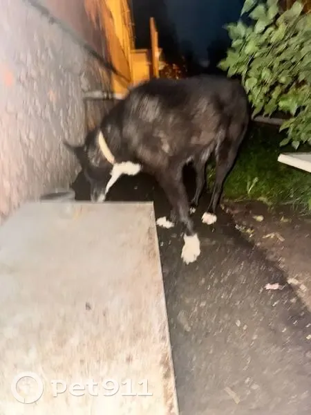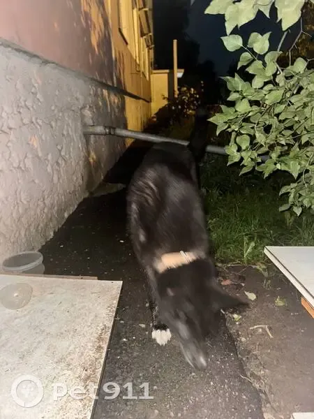 Чёрный с белым воротником с коричневым ошейником. Видно , что домашний. Предполагаю , что убежал у местных. Замечен 24.08.25 в 0.30 у 3-го подъезда (угощался едой для бродячих котов и кошек).