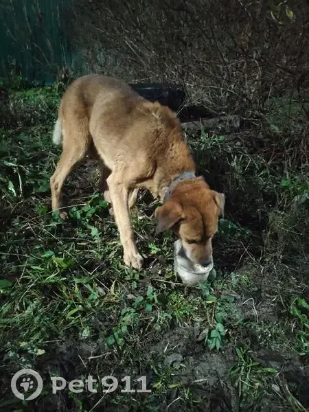 Пёс сидит под дождём , подходит, даёт погладить. Окрас каштановый, Добрый. Очень худой. Подкармливаю, как могу. Может кто-то ищет или кому то просто нужен друг!