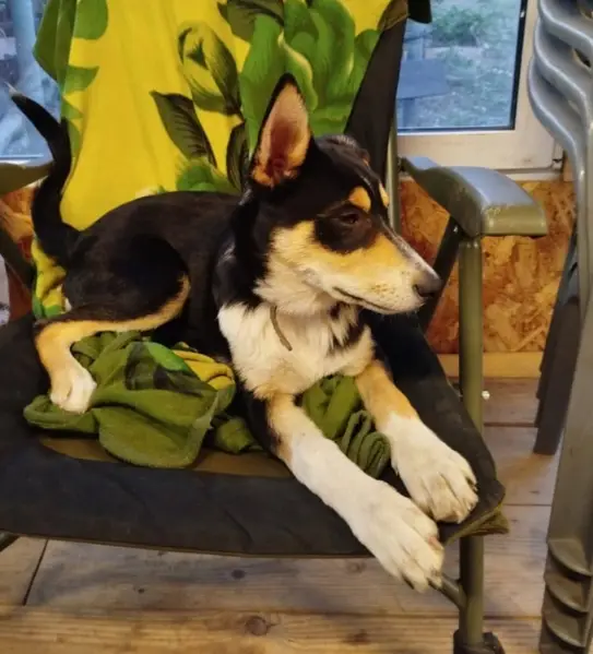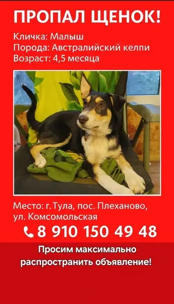 Найдена собачка-щенок, в красном ошейнике. Ласковая и послушная. Видно, что домашняя. Испугана. Временно девушка взяла домой, но аллергик, долго не может держать.