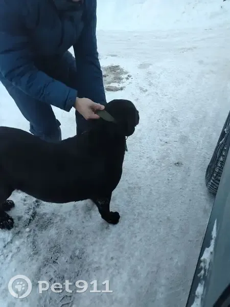 Возможно лабрадор ретривер, чёрного окраса. Очень дружелюбный, стоило открыть дверь, сразу забрался в машину. Видно, что домашний. В ошейнике с карабином. Ощущение, что был пристегнут на цепь или поводок и разогнул карабин. Бегал в посёлке Рудаково, по улице Л. Толстого.