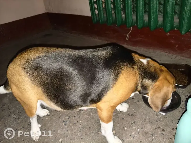 В подъезде, видимо, запустили, собака породы Бигль, девочка, очень добрая. Хозяин отзовись.