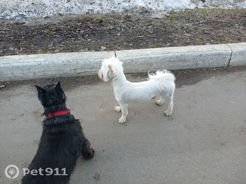 Белая собака,кобель стриженый,похож на йорка,без ошейника ,ходит по стадиону Арсенал