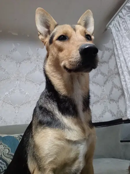 Собачка среднего размера, видно что домашняя, т.к. забегает в открытую калитку, хочет поехать в машине, не боится людей. Местные жильцы ее подкармливают, но ей нужен хозяин и теплый дом. Бегает в п.Октябрьский на пересечении пр.25 и 24.
