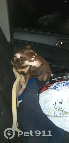 Девочка, коричневого цвета, морда и живот светлые, гладкошерстная. Найдена в районе ул. Пузакова. Запрыгнула в машину