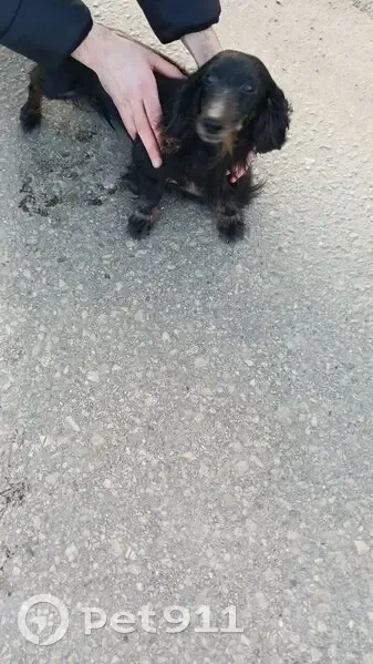 Девочка, похожа на длинношерстную таксу, по виду пожилая ~7 лет. В руки дается, на контакт идет.