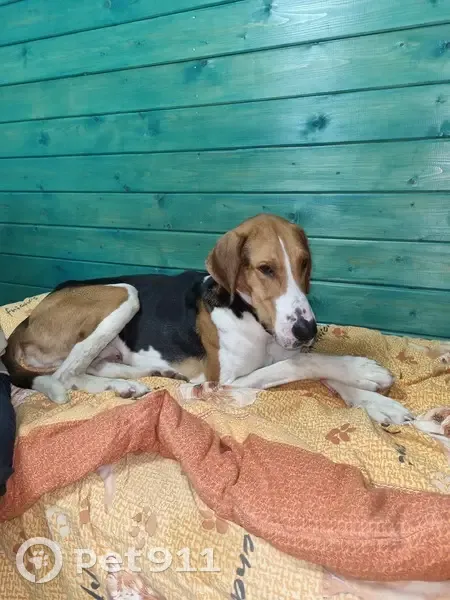 Кобель гончей, с ошейником, бегал возле шоссе...