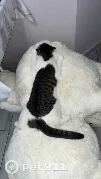Окрас как на фотографии, возможно спрыгнул с окна, оказывается прошлые жильцы москитную сетку залепили скотчем! Была отлеплена.. Кастрирован, маленькие ушки, годик