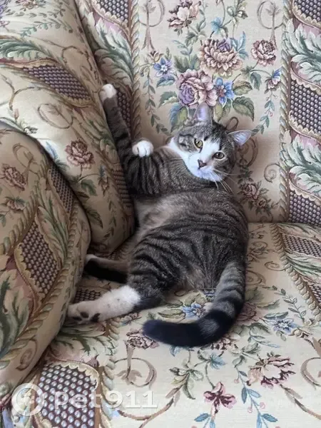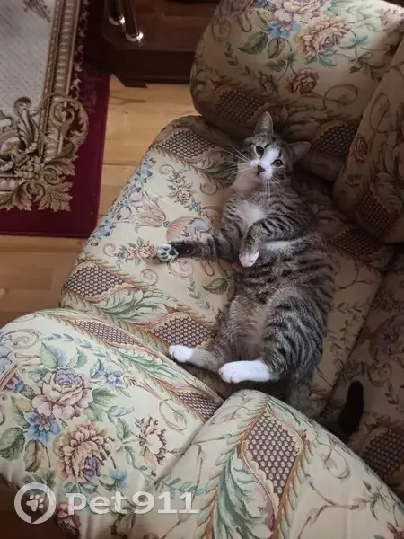 Активный котик, непропорционально длинное туловище. Полосатый, а живот и носочки белые. Большой нос с небольшой горбинкой. Не появлялся дома чуть больше суток, что для него не характерно, вечером- ночью всегда приходил домой в любом случае, искали сами и не нашли.